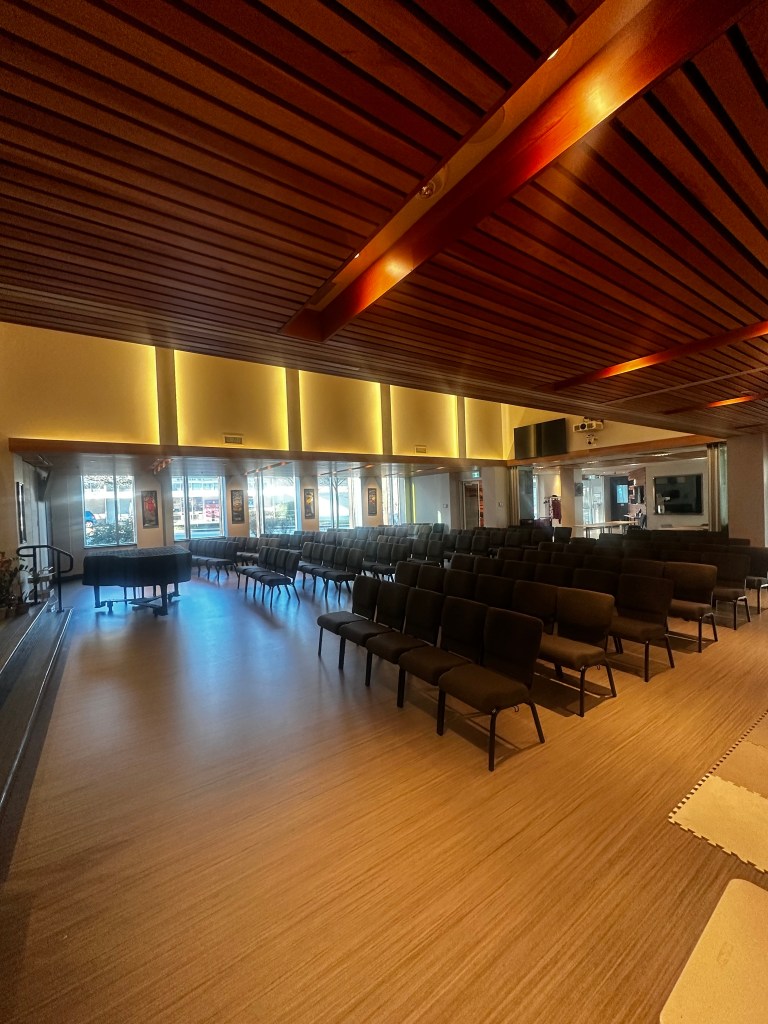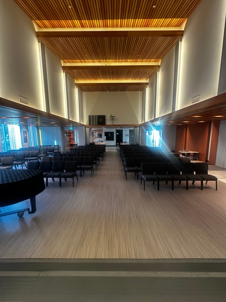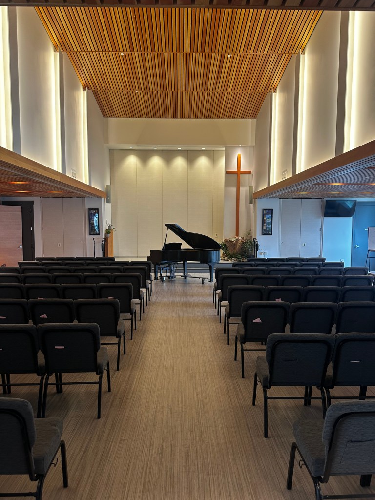 The sanctuary, with a capacity of 206 people, is a versatile venue ideal for weddings, memorials, lectures, and concerts. Its acoustically optimized design ensures exceptional sound quality, creating an intimate atmosphere for ceremonies and a captivating experience for performances, making it perfect for any event.