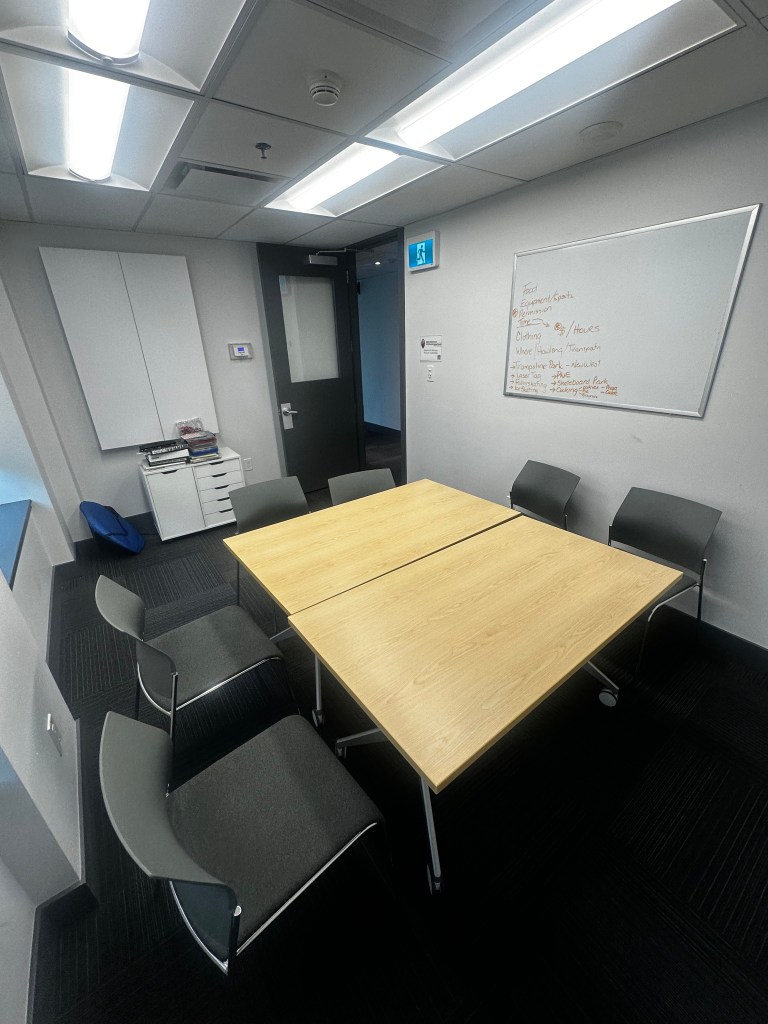 Classroom 2: Located upstairs, this space is ideal for small meetings, with a suggested capacity of 10 people. It offers an intimate setting perfect for focused discussions.